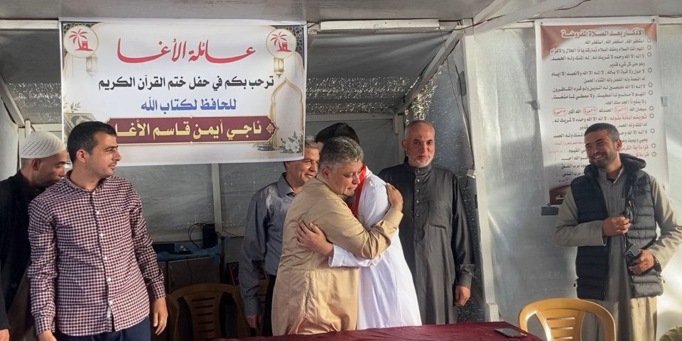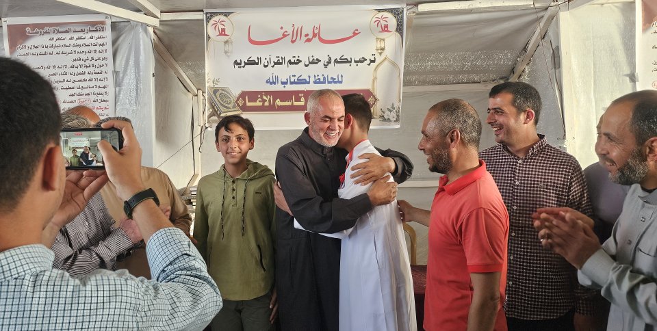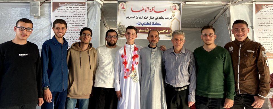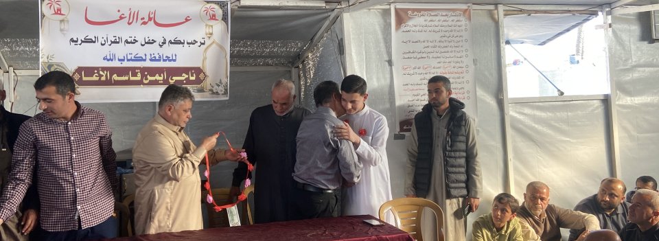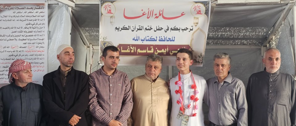 تتقدّم عائلة الأغا ممثلة بمختارها الحاج إياد أحمد الأغا "أبو أحمد"، بأسمى آيات التهنئة والتبريكات بمناسبة إتمام الطالب ناجي أيمن قاسم الأغا حفظ كتاب الله، سائلين الله أن يتقبّل منه ويجعله من أهل القرآن وخاصته، وأن يبارك في علمه وعمله..
