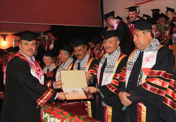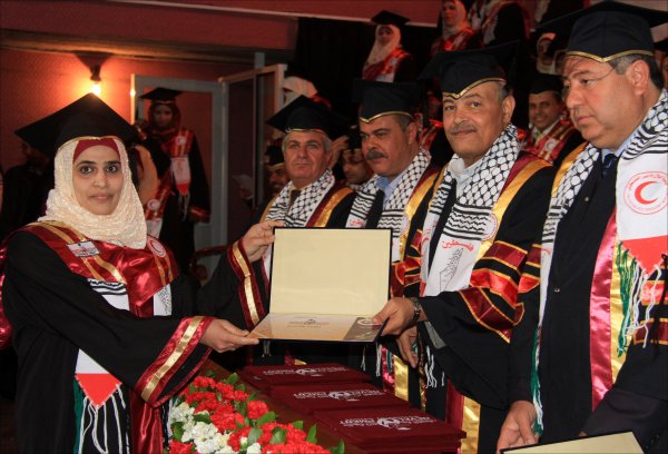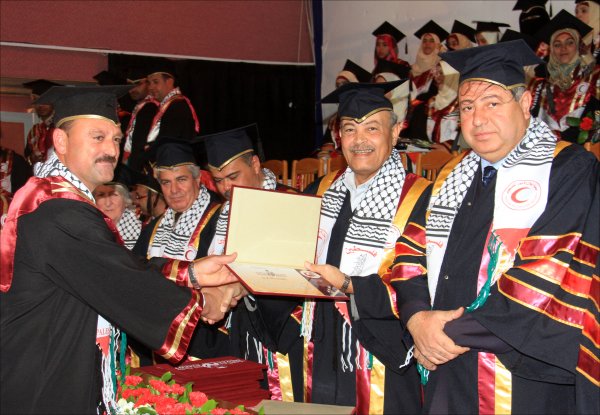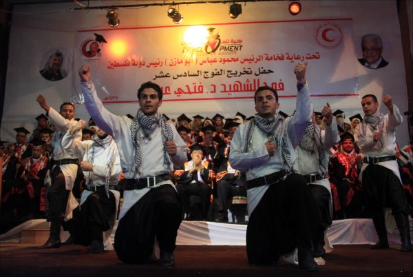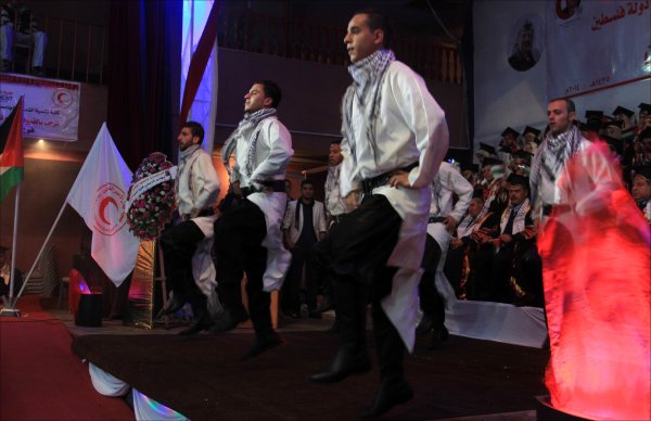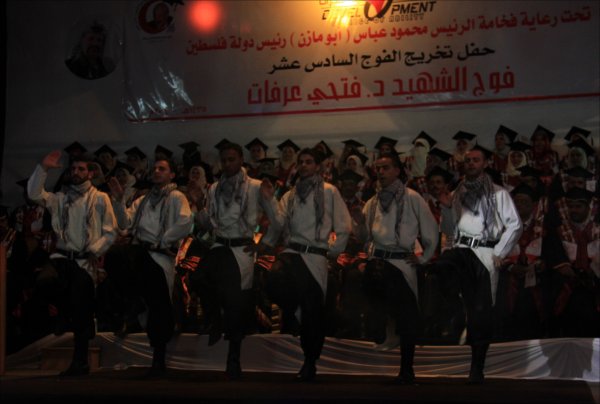 وتخلل الاحتفال عروضا فنية وتراثية "الدبكة الفلسطينية" ثم اختتم بتوزيع شهادات التخرج.