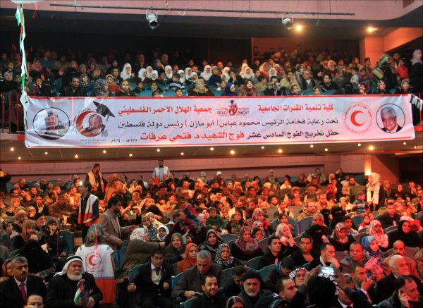 قاعة الهلال الأحمر- خان يونس- الخميس الموافق 30-01-2014 احتفلت كلية تنمية القدرات الجامعية بتخريج فوجها السادس عشر "فوج الشهيد فتحي عرفات" في قاعة جمعية الهلال الأحمر الفلسطيني غرب مدينة خان يونس جنوب قطاع غزة.