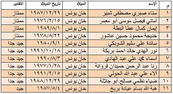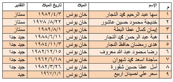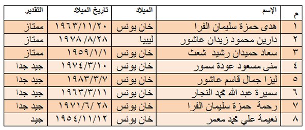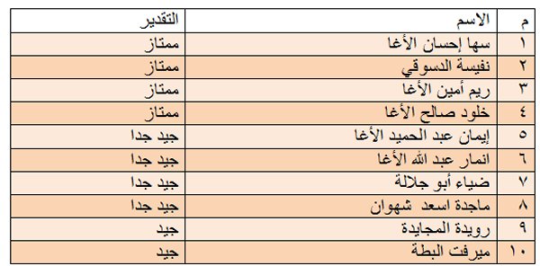 2) كشف بأسماء الناجحات في دورة عليا