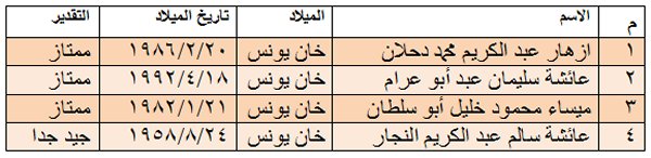 أسماء الناجحات :