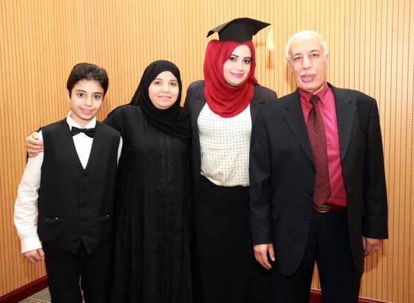 الخريجة محاطة بوالدها ووالدتها وشقيقها