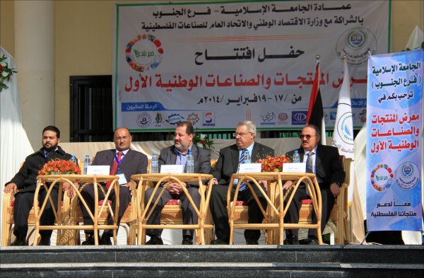 خان يونس- الإثنين الموافق 17-02-2014 افتتحت وزارة الإقتصاد فعاليات معرض "المنتجات والصناعات الوطنية" بحرم الجامعة الإسلامية بخان يونس بالشراكة مع الاتحاد العام للصناعات الفلسطينية، وأكدت وزارة الاقتصاد الوطني على ضرورة دعم وحماية المنتج الوطني ليدخل غمار منافسة المنتجات الدولية، مشيرةً إلى سعيها لحمايته من المنتجات المستوردة.
