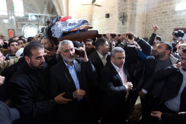 صورة من مسجد العمري بغزة خلال تشييع الشيخ الكحلوت