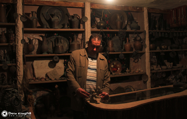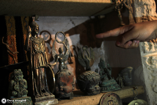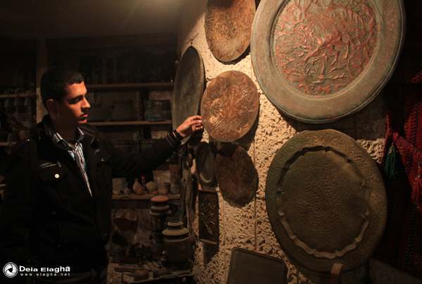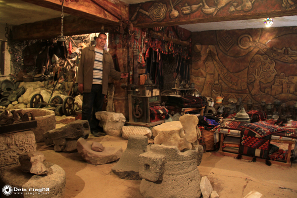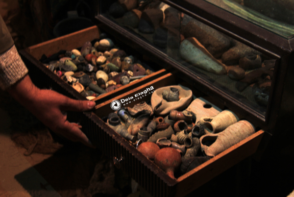 على درج حجري منحوت بطريقة فنية راقية، بإمكانك أن تجد طريقك إلى متحف أثري دشّنه الأربعيني مروان شهوان أسفل منزل استأجره بخان يونس، ليسرّ نظر الضيوف الذين يتوافدون لمشاهدة ملامح التراث الفلسطيني عن كثب.