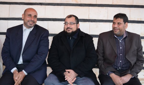 السيد مصطفى جابر الاغا (والد العريس)، العريس، أ. أحمد أبو حجاج (والد العروس)