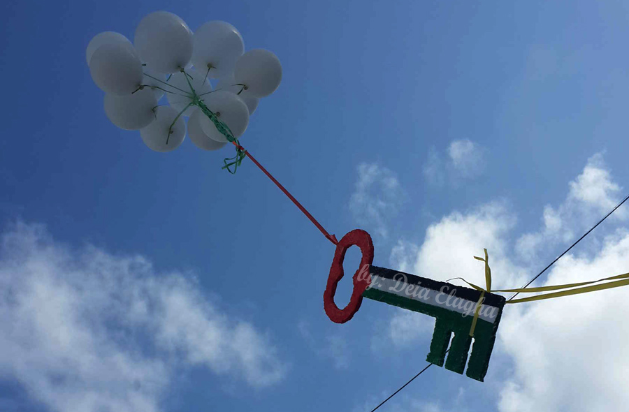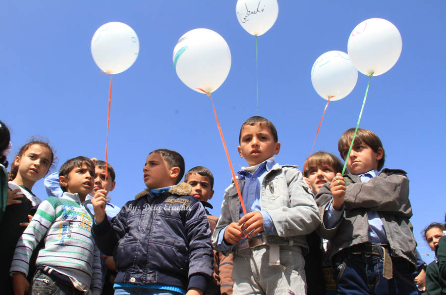 وخلال الفعالية رفع الأطفال بالونات حملت أعلام فلسطين ومفتاح العودة، ويافطات كتب عليها شعارات دعت إلى التمسك بالأرض والحفاظ على الهوية الفلسطينية، وتوحيد الصفوف، واستهل الحفل بتلاوة آيات عطرة من القرآن الكريم ومن ثم السلام الوطني الفلسطيني.