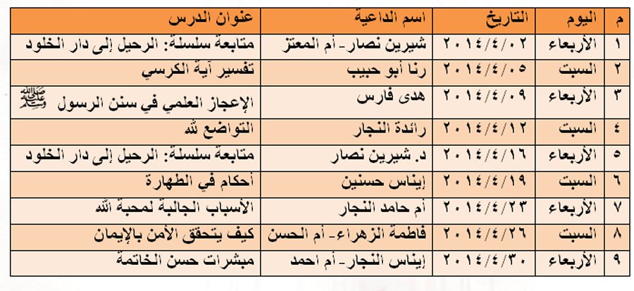 الرئيسة/دار الكامل/دار الكامل- أنشطة شهر أبريل 2014 دار الكامل دار الكامل- أنشطة شهر أبريل 2014 تاريخ النشر : الإثنين | 31-03-2014 | 00:14 14483 بسم الله الرحمن الرحيمجدول أنشطة دار الكامل خلال شهر ابريل نيسان 2014م اضغط هنا للتواصل أو التعرف على أ. محمد كامل عبدالرحمن سليم الأغا يمكنك تلقي أحدث الأخبار أول بأول بانضمامك لإحدى مجموعات الواتساب الخاصة بالعائلة من خلال الضغط هنـا اظهر المزيد