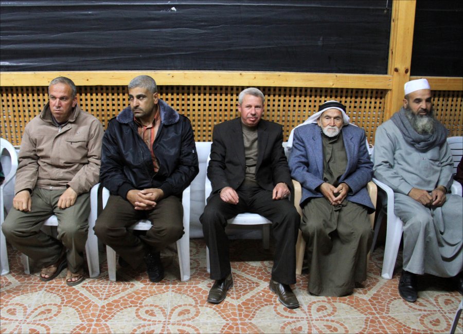 أ. محمد(شقيق العروس)، ربيع سعيد الأغا(عديل العريس)، العريس، والد العروس، صالح(شقيق العريس)
