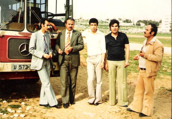 الواقفون محمد سالم، تيسير السق، مازن البطه، الجالسون، موسى العبادلة، سلامه السقا، والسائق محمد حسن العقاد