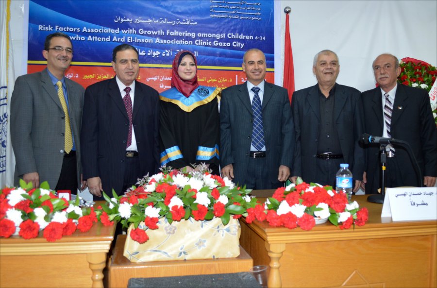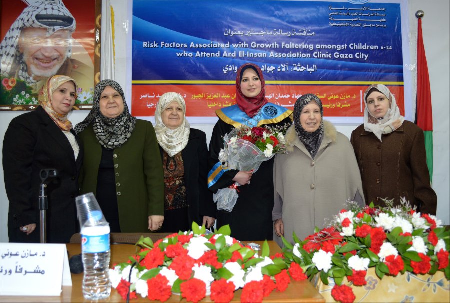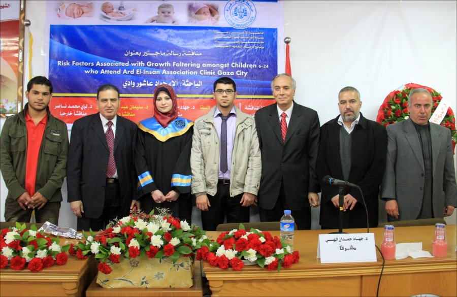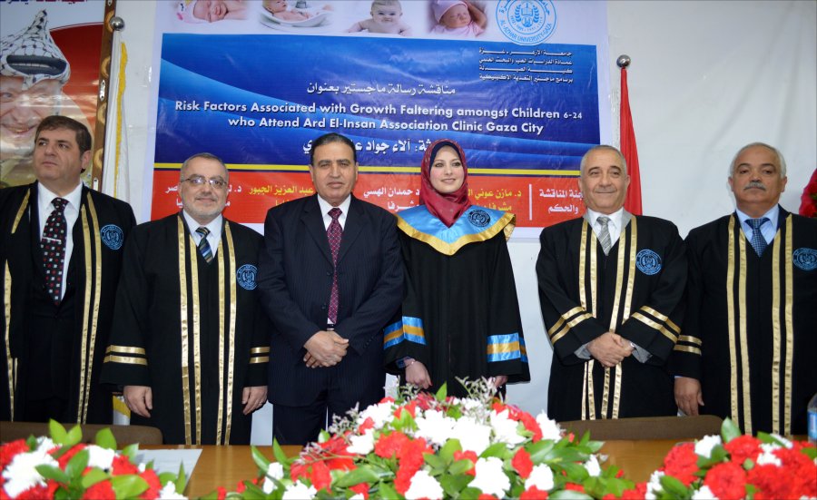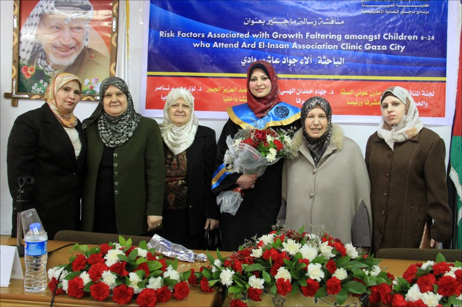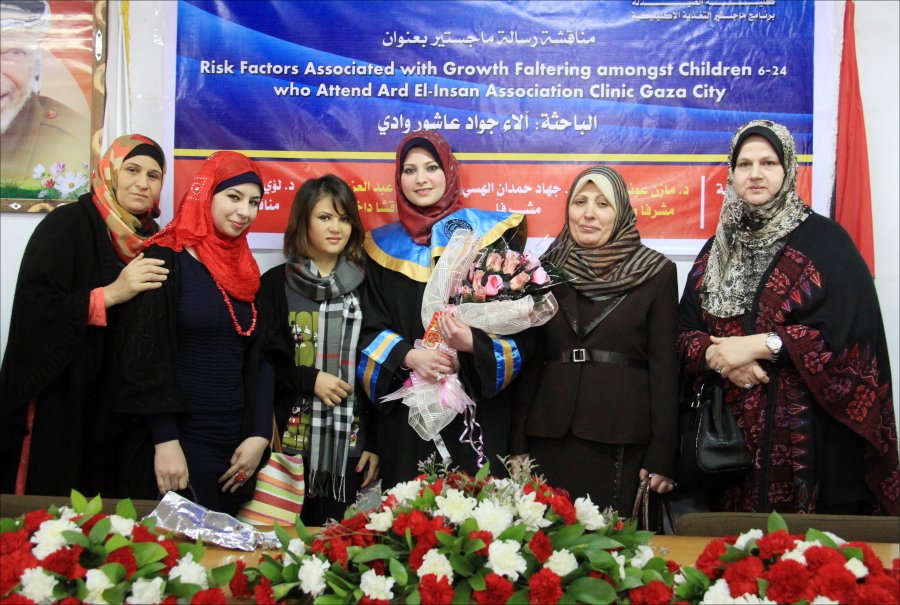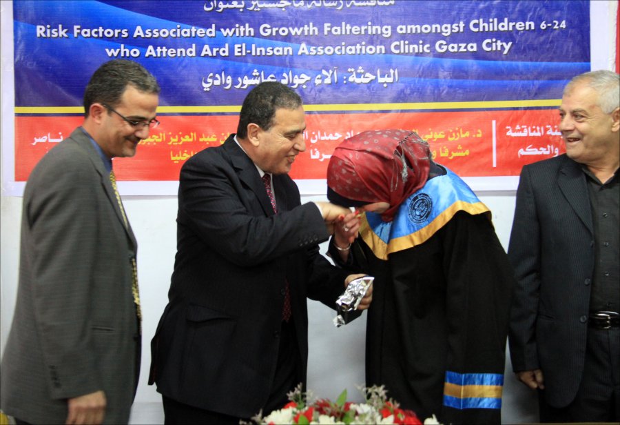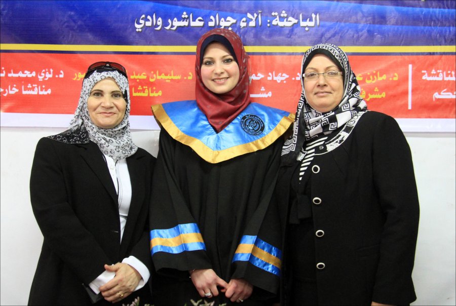 قاعة المؤتمرات الكتيبة جامعة الأزهر بغزة- السبت الموافق 05-04-2014 نالت الدكتورة الصيدلانية ألاء جواد عاشور وادي حرم الدكتور أسامة محمد قاسم محمد الأغا درجة الماجستير، في التغذية الإكلينيكية بكلية الصيدلة بعد اجتيازها بحث التخرج بعنوان: