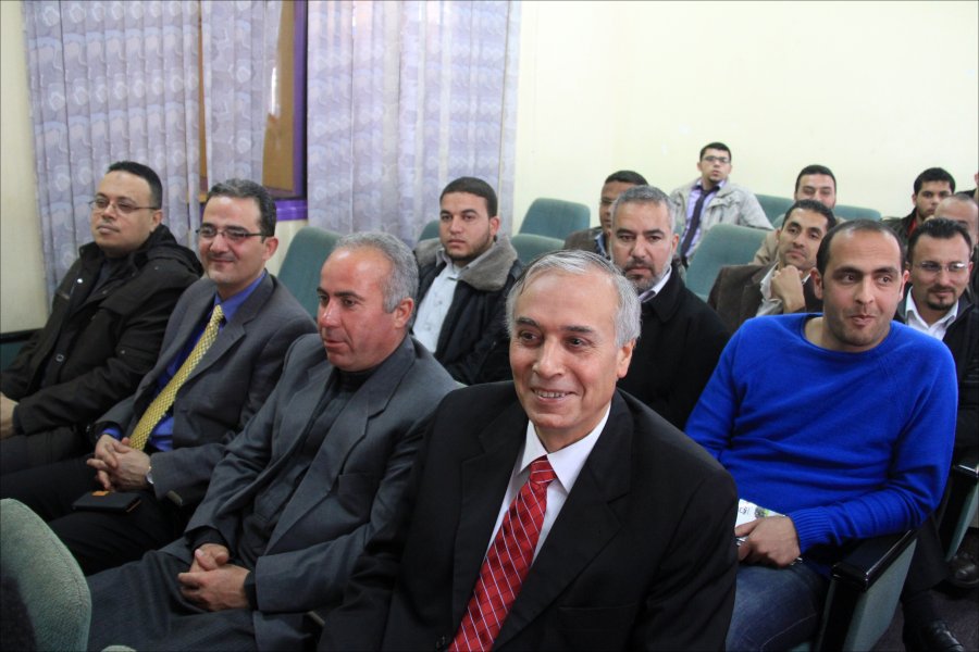 أ. زهير يوسف الأغا، م. سليم مصطفى الأغا، د. مروان سليم الأغا، الباحثة ووالدها، د. إيهاب قاسم الأغا