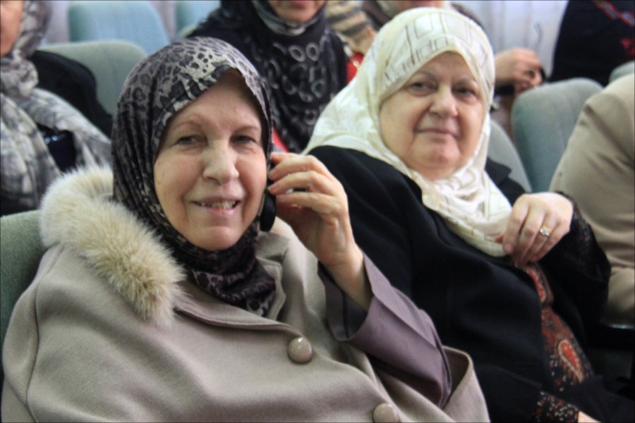 أم حسام الأغا، الباحثة، أ. نائلة خليل الأغا، والدة الباحثة، م. جمانه سليم الأغا