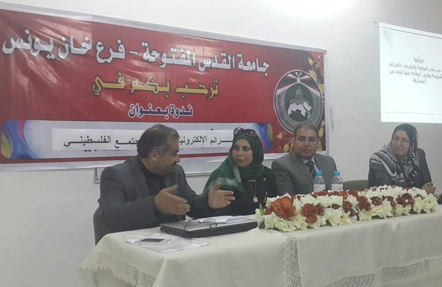 نظمت جامعة القدس المفتوحة فرع خان يونس ندوة علمية بعنوان الجرائم الالكترونية في المجتمع الفلسطيني، وذلك يوم الثلاثاء 08-04-2014.