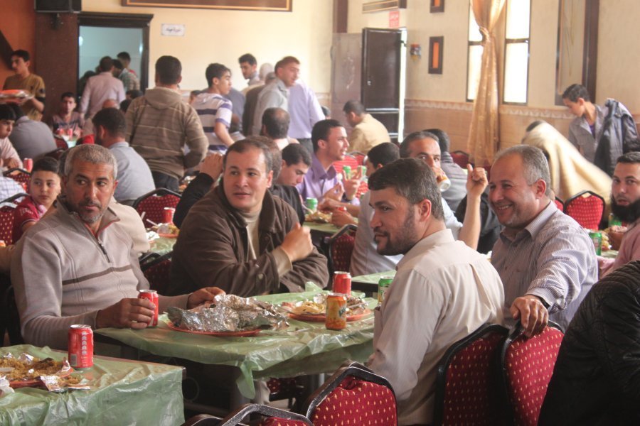الحاج سمير أحمد الأغا وشقيقة الحاج نبيل الأغا أبو أحمد من أمام الصالة