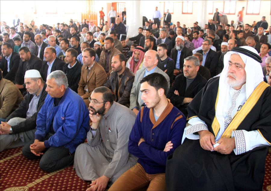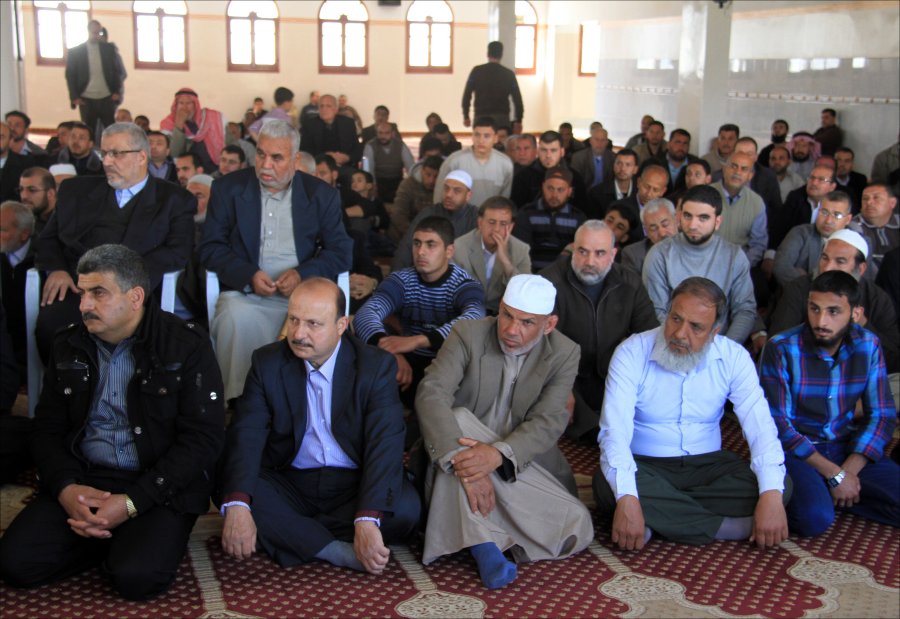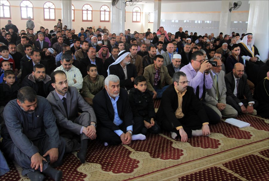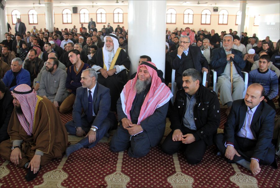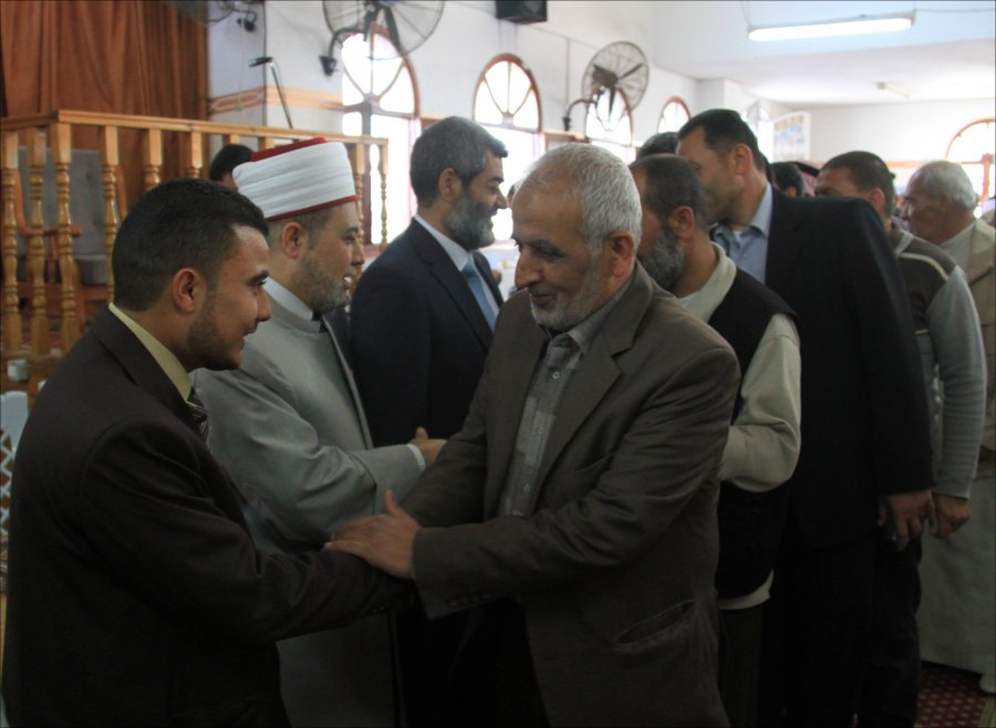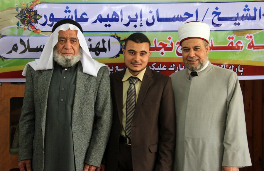 والد العريس الشيخ إحسان عاشور شاكراً للضيوف تلبية الدعوة