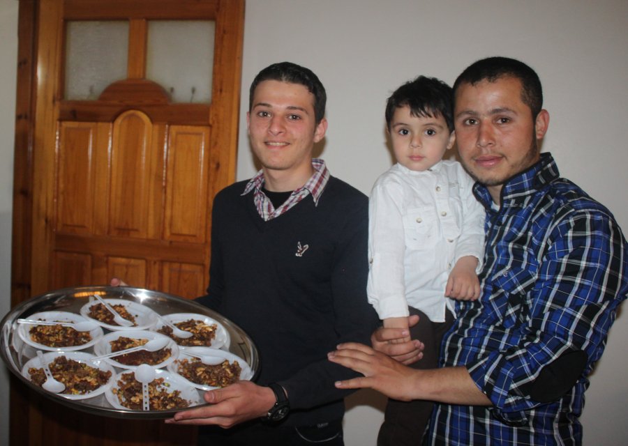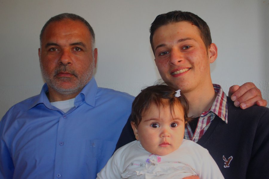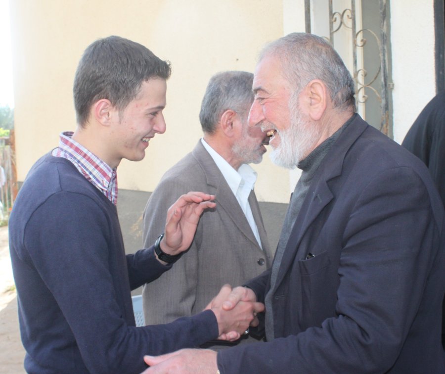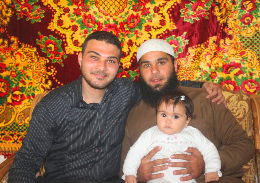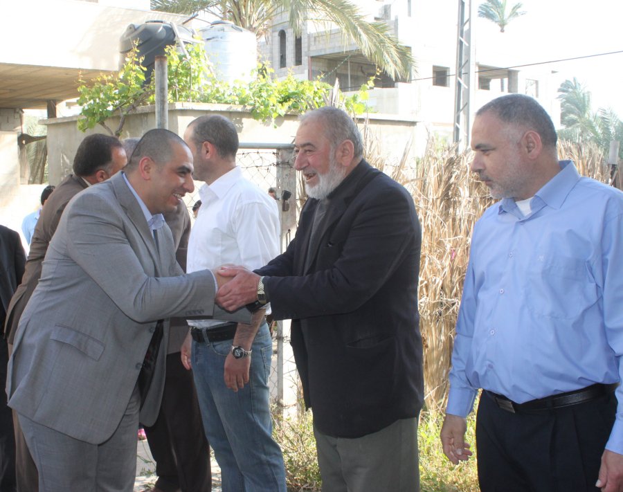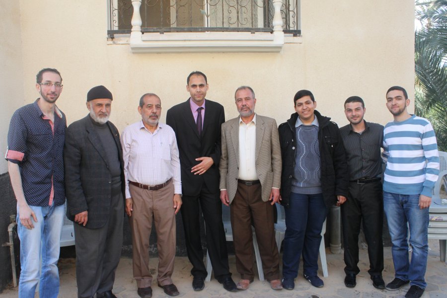 الحاج جهاد الأغا يتوسط نجليه مهند وقاسم
