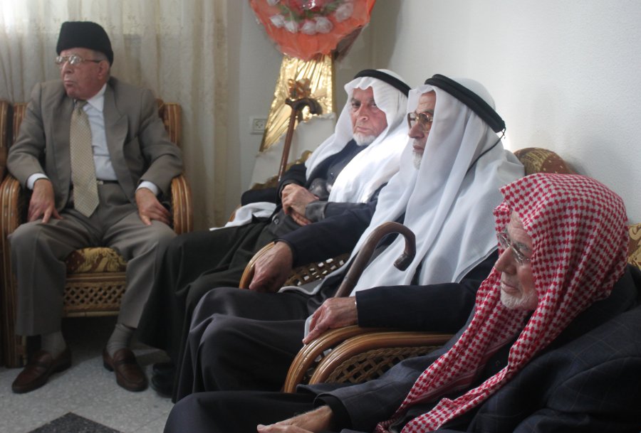 أ. عبدالكريم صقر، الحاج فتحي قاسم الأغا جد العروس، الحاج عدنان صالح، د. وجيه الأغا والد العروس