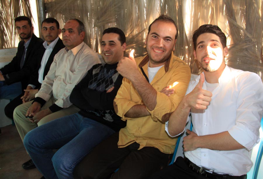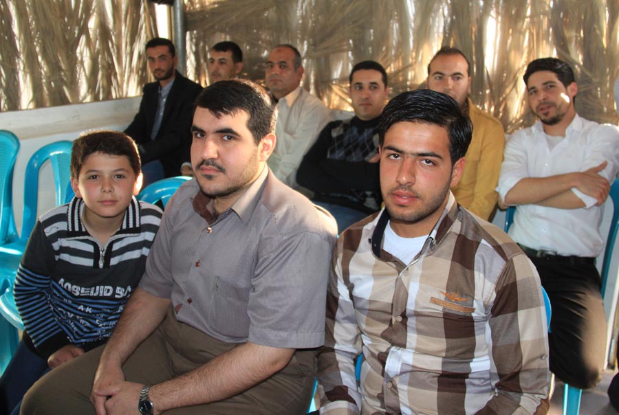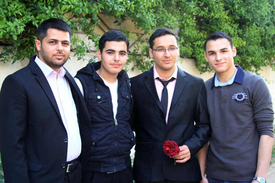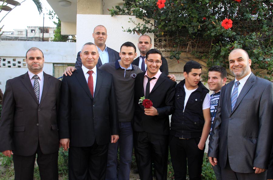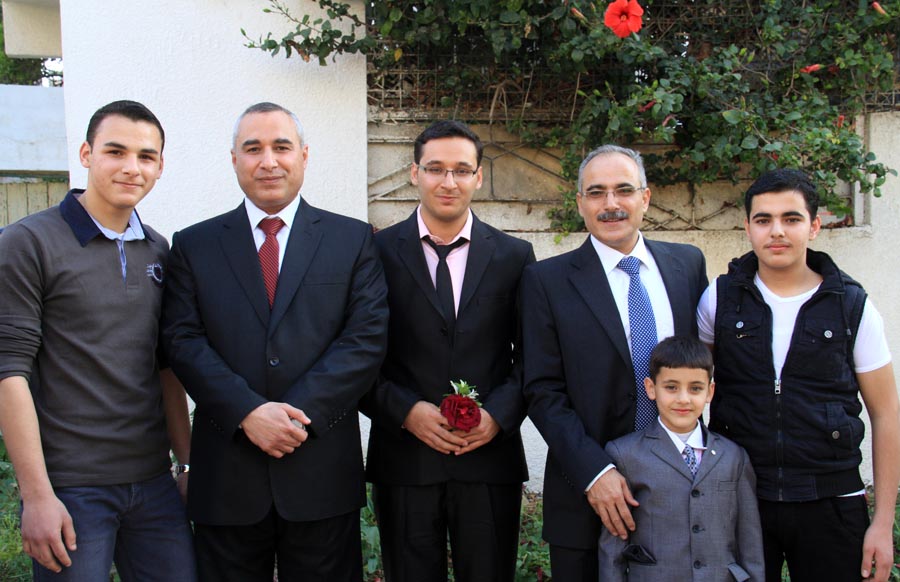 محمد(شقيق العروس)، حمزة(شقيق العريس)، العريس، والد العريس ونجله فراس، والد العروس وعمها يحيى،