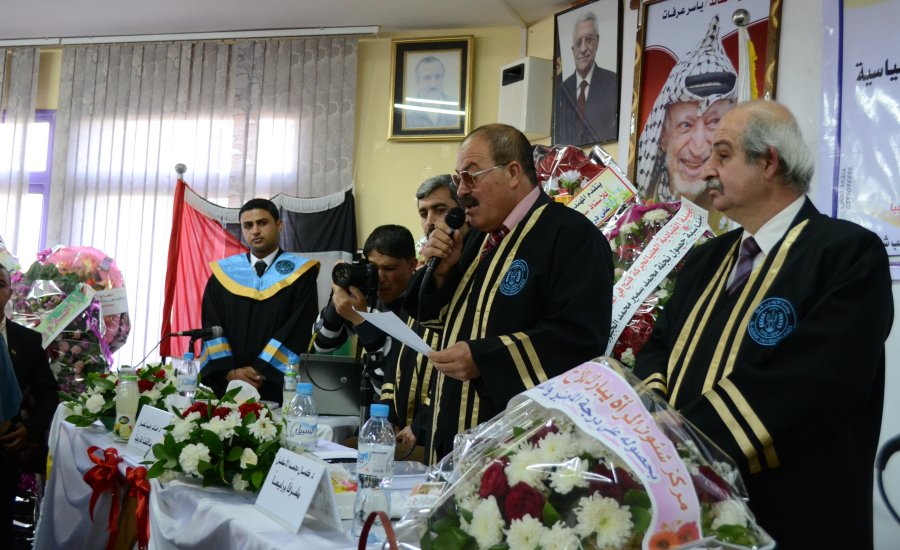 ..، أ. أبوعبدالله الأغا، د. صالح النجار، الحاج ياسين الأسطل، د. سمير أبو مدللة (عميد كلية الإقتصاد والعلوم الإدارية)