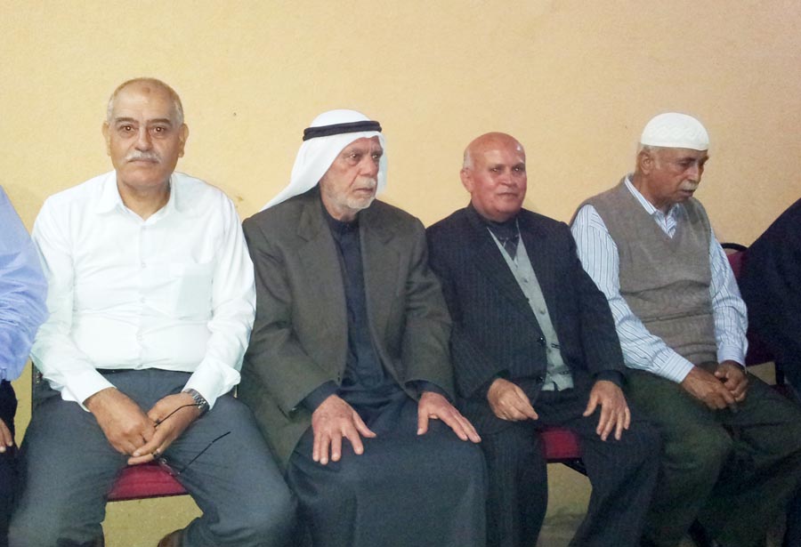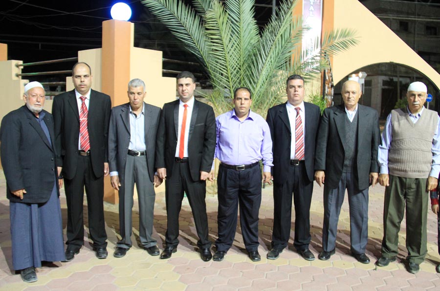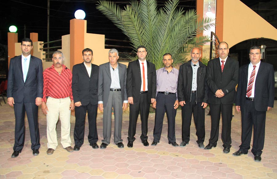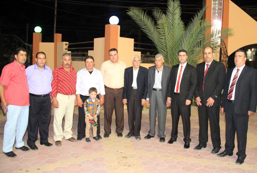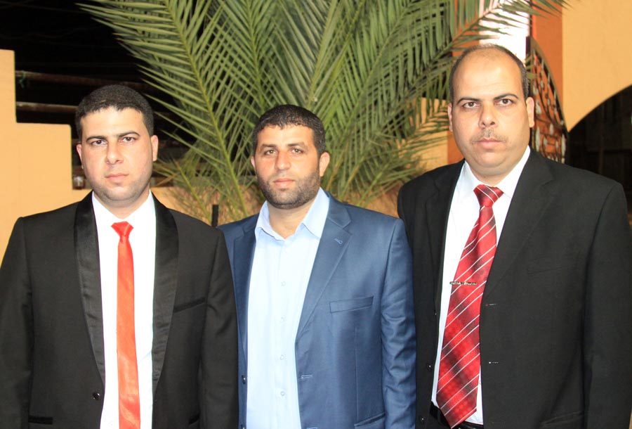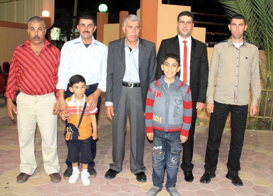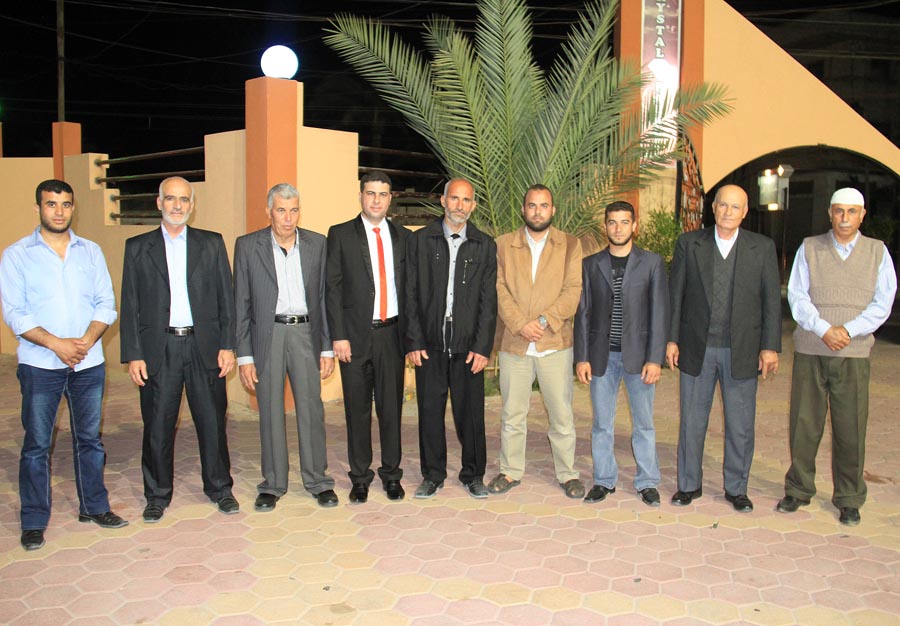 ا. مؤمن، أ. عمر(شقيق العريس)، أ. إسماعيل عيد الأغا(زوج شقيقة العريس)، ..، العريس، والد العروس، عديل العريس،