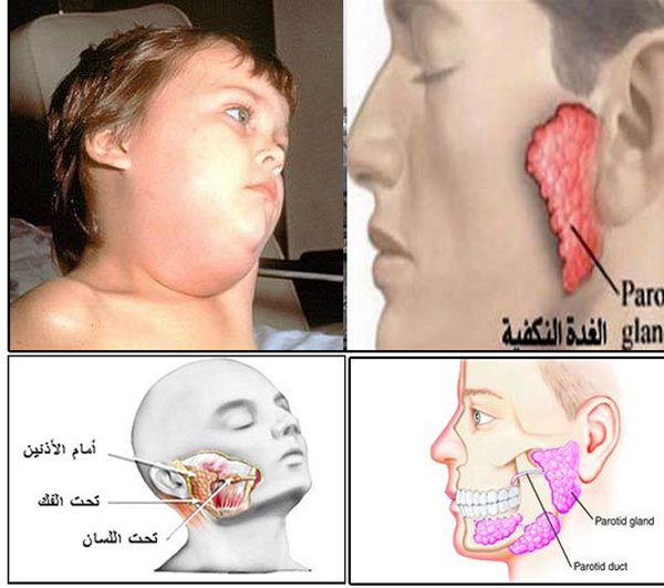 وشرح البزم أعراض المرض المتمثلة في انتفاخ الغدة النكافية، وهو العرض الأساسي في 95% من الحالات، مشيرًا إلى أن هذا الانتفاخ يكون مؤلمًا، خاصة عند تناول الطعام أو البلع، بالاضافة إلى الشعور بالصداع والإعياء وارتفاع طفيف في درجة الحرارة وتورم الخد، وألم بالمنطقة المحيطة بالغدة المصابة.