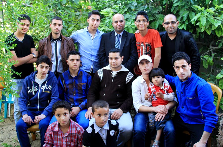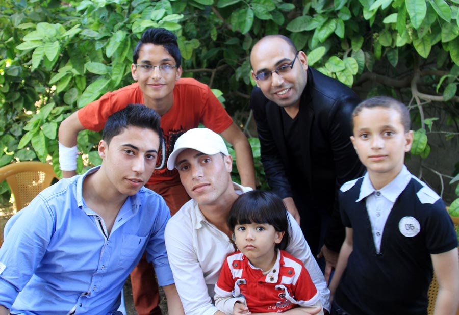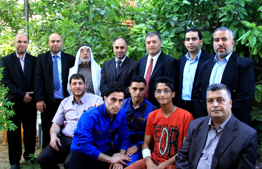 أ. ياسر وشقيقه م. هاني، سالم جبارة الأغا، أ. تبسيم إبراهيم الأغا(زوج شقيقة العروس)، أ. علاء سمير الشوربجي، والد العريس، العريس