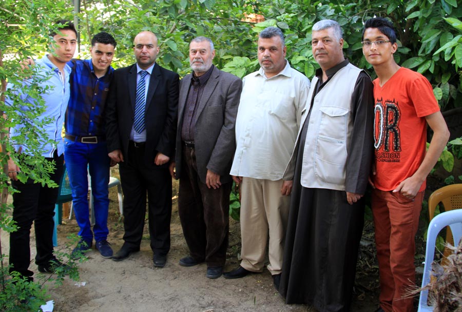 أ. تبسيم إبراهيم الأغا، حسن عواد، م. هاني(شقيق العريس)، والد العريس، أ. عودة(شقيق العريس)، العريس