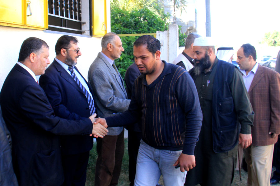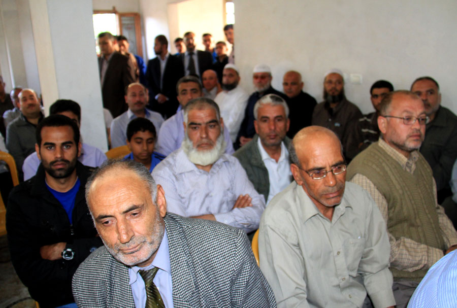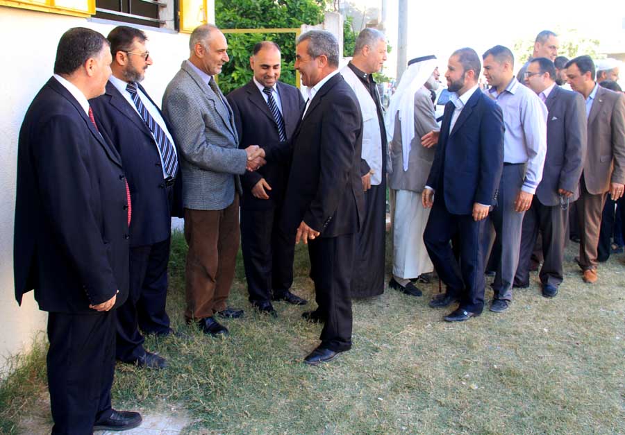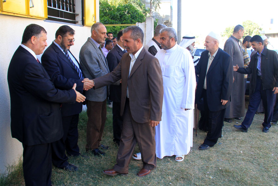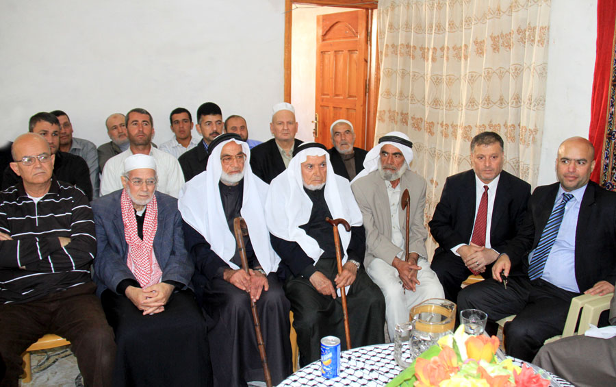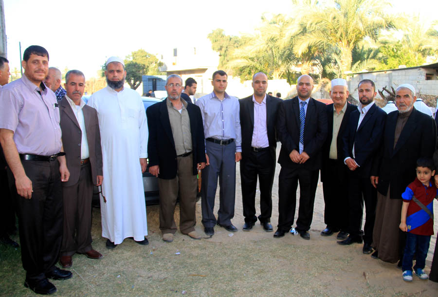 د. شحدة عواد، أ. عبدالكريم صقر الأغا، أ. حيدر حلمي الأغا، ..، والد العروس، الحاج عدنان صالح الأغا،