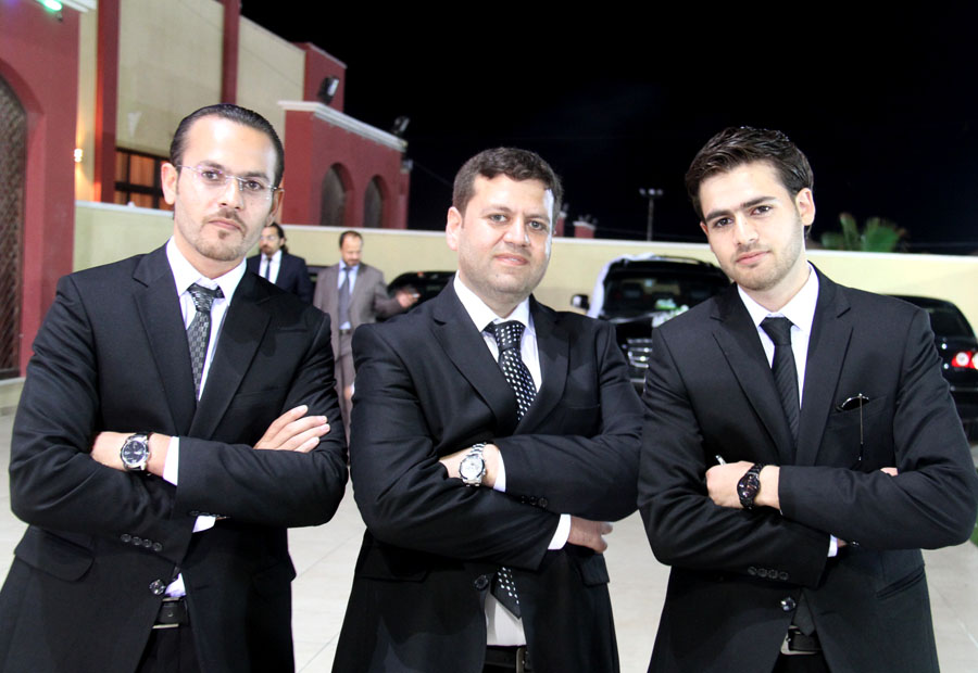 أ. أسامة(شقيق العريس)، أ. رياض عثمان الأغا، والد العروس، أ. روحي سالم الأغا، أ. عبدالله(شقيق العروس)