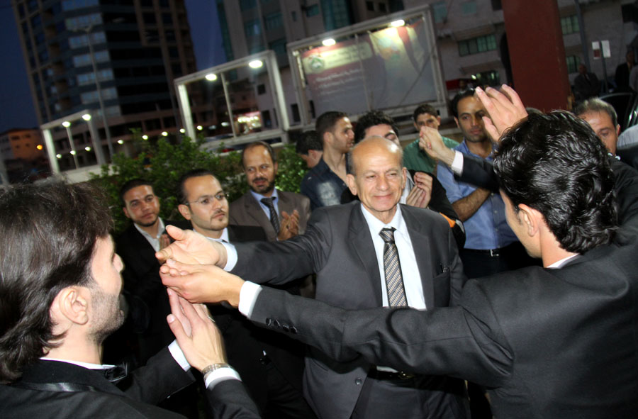أ. إياد، أ. أبي(شقيقا العريس)، أ. إياد أبوشقرة(زوج شقيقة العرريس)، العريس، أ. عاهد محمد الأغا