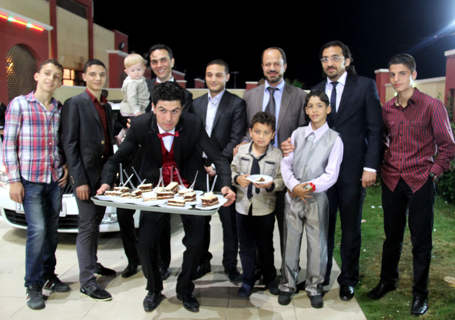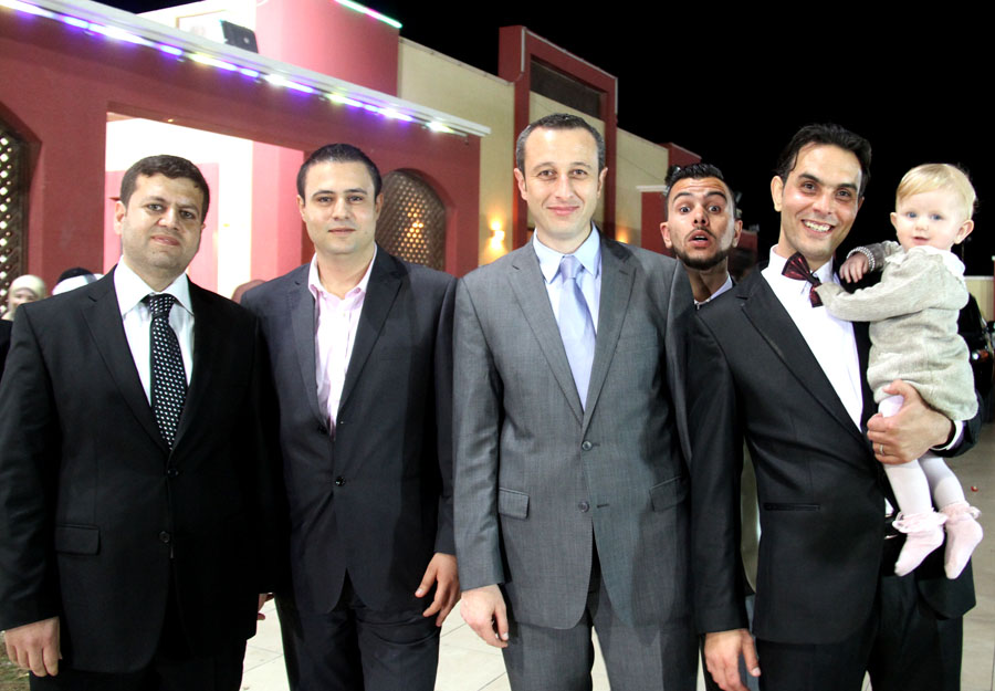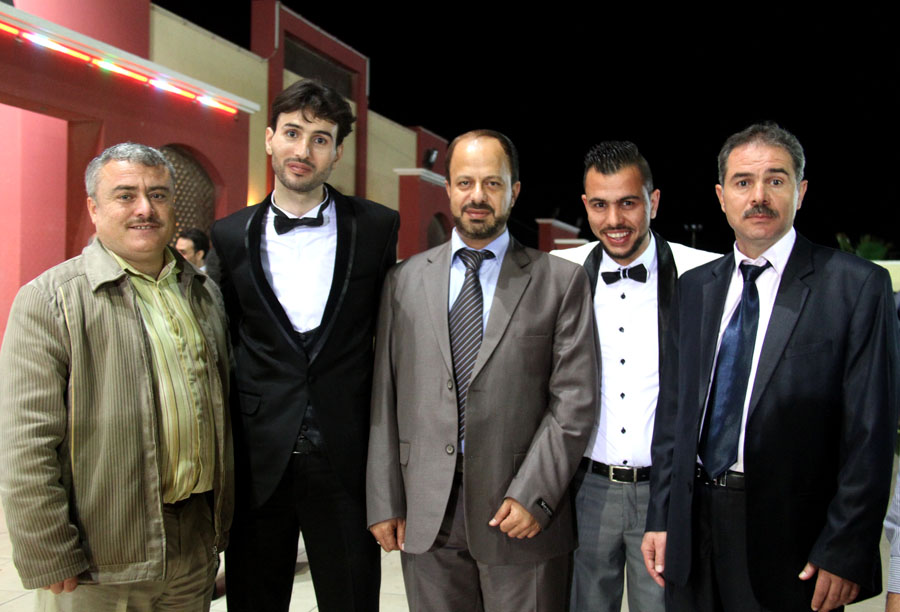 أ. أبي وأ. أسامة(شقيقا العريس)، سعيد(شقيق العروس)، أ. إياد(شقيق العريس)، العريس، والد العروس، أ. إياس(شقيق العريس)