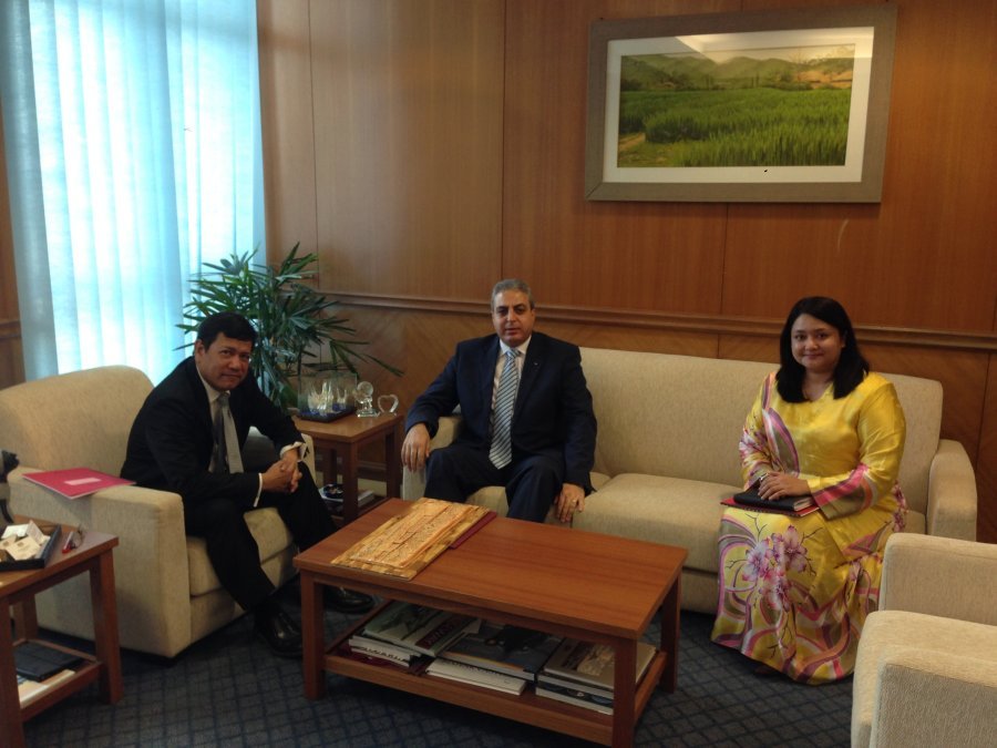 إلتقى د. أنور الأغا سفير دولة فلسطين لدى ماليزيا مع سعادة السيد داتو رملان ابراهيم نائب مـديـرعام وزارة الخارجية الماليزية للعلاقات الثنائية، بحضور السيدة رفيدة عزيز مساعد المدير الام و السيد محمد حسني شاه ايران بن اسماعيل مسؤول ملف فلسطين بالخارجية، و ذلك في مكتبه بمقر وزارة الخارجية الماليزية، حيث وضعه في صورة تطورات الأوضاع على الساحة الفلسطينية و الجهود التي بذلت لتحقيق المصالحة الفلسطينية و الاتفاق على تشكيل حكومة الوفاق الوطني برئاسة الرئيس محمود عباس، التي ستكون مهمتها الاساسية التحضير للانتخابات الرئاسية و التشريعية.