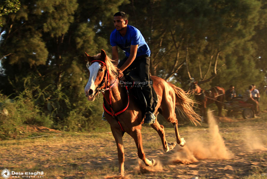 اعتادعشرات الشباب على تنظيم سباق للخيل والجمال في منطقة "معن" بمدينة خان يونس جنوب قطاع غزة، للهروب من ظروف الفقر والبطالة والحصار الصهيوني، والبحث عن متنفس في ظل غياب الكثير من الأنشطة الرياضية والمسابقات.