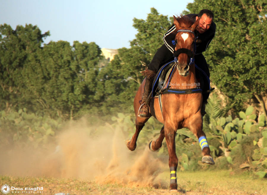 وأضاف "بعد ذلك يتدرب على كيفية توجيه الحصان يميناً ويساراً، ويتبع ذلك عملية الهرولة، لتنتهي تلك الخطوات الأساسية بما يسمى بالكنتر المفتوح والمغلق، وهو أن ترخي اللجام للحصان لينطلق بالجري، ثم الإغلاق، وهو سحب اللجام مرة أخرى لتخفيف الجري أو للإيقاف".