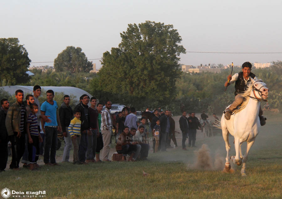 ويشارك في مضمار السباق المقام على أرضٍ تصل مساحتها 10 دونمات، ما يزيد عن 30 فارساً، يمتطون صهوات خيولهم من شتى أنحاء قطاع غزة، ضمن عرض أسبوعي يقدمونه كل يوم جمعة.