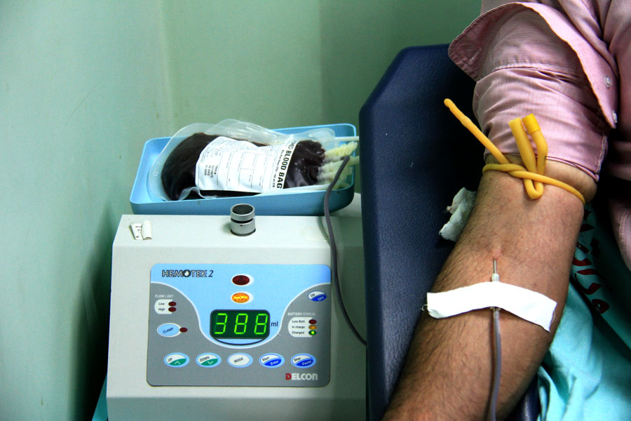 المتبرعون في انتظار الفحص والتبرع بالدم