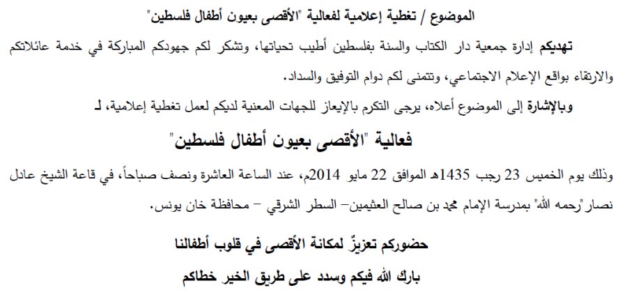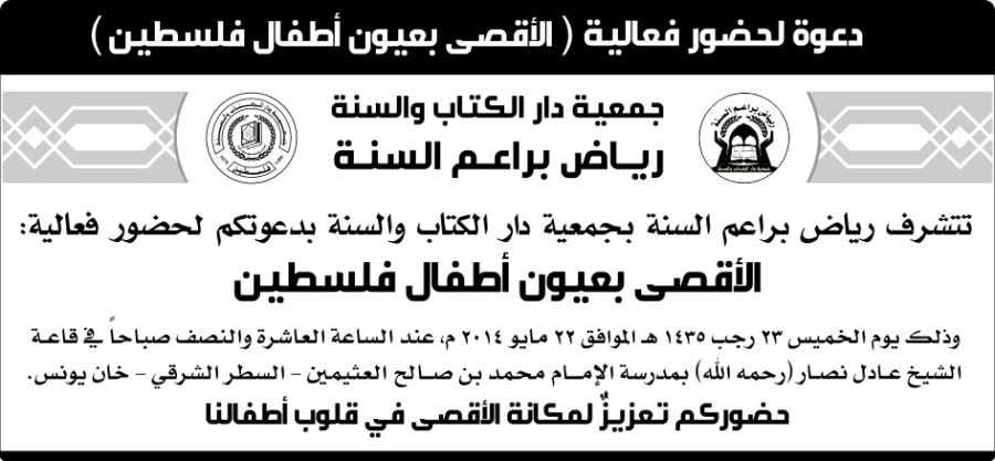 الرئيسة/متفرقات/دعوة لحضور فعالية الأقصى بعيون أطفال فلسطين متفرقات دعوة لحضور فعالية الأقصى بعيون أطفال فلسطين تاريخ النشر : الأربعاء | 21-05-2014 | 14:04 3413 بسم الله الرحمن الرحيمجمعية دار الكتاب والسنةللتواصل هاتف: 2063433جوال: 0599604464 يمكنك تلقي أحدث الأخبار أول بأول بانضمامك لإحدى مجموعات الواتساب الخاصة بالعائلة من خلال الضغط هنـا اظهر المزيد