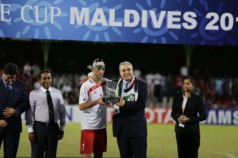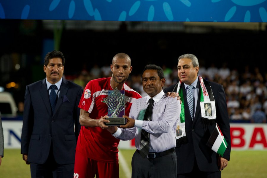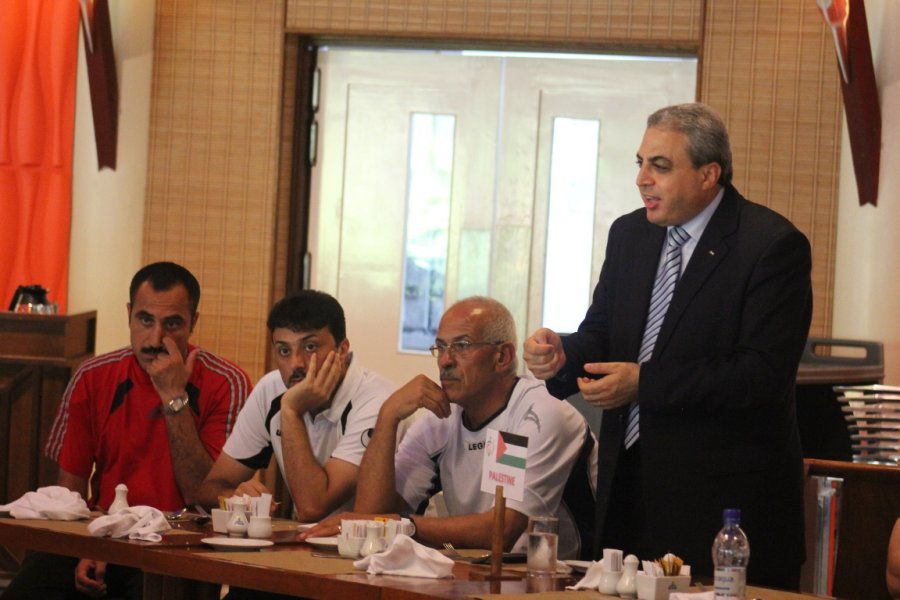 ماليزيا- سعادة سفير فلسطين في ماليزيا د.أنور الآغا يزور بعثة منتخبنا الوطني، ويخاطب اللاعبين بكلمات تشجعية وتحفيزية، قبيل مباراة الفدائي المصيرية، أمام المنتخب الفلبيني في نهائي كأس التحدي الآسيوي.