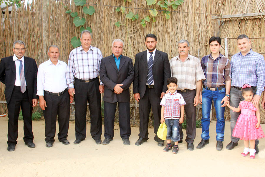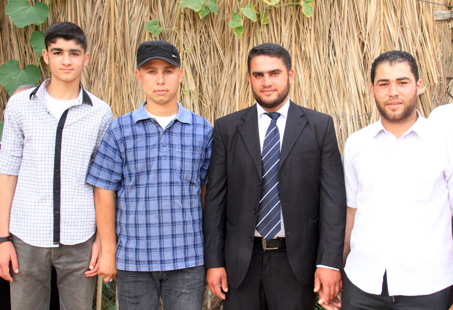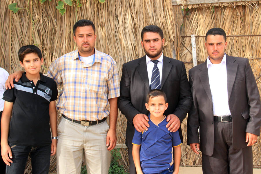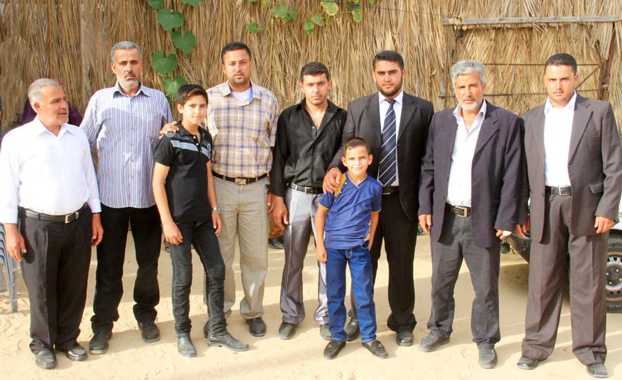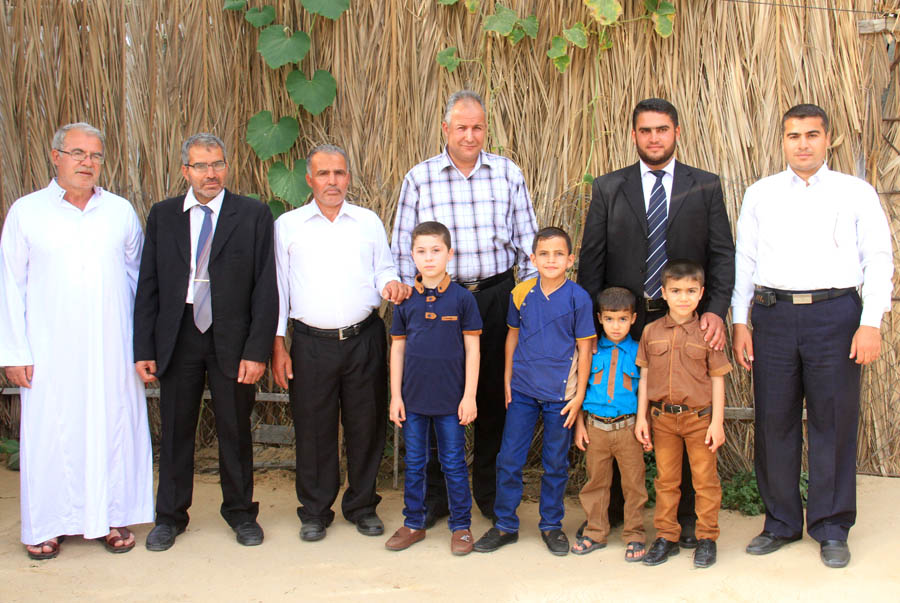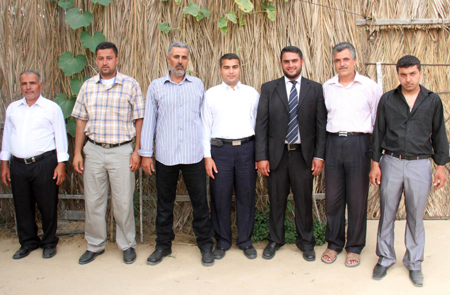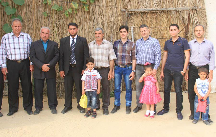 أ. محمد(شقيق العريس)، والد العريس، العريس، رمزي عاشور الأغا(زوج شقيقة العريس)، أكرم(شقيق العريس)، أمجد عليان الأغا، والد العروس