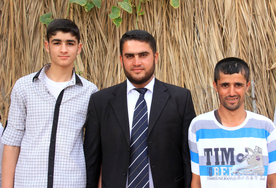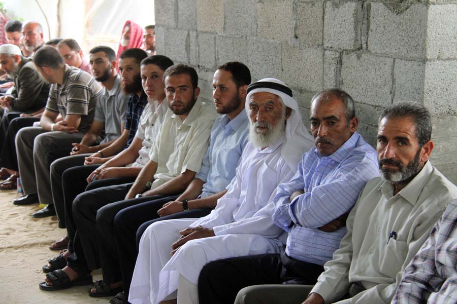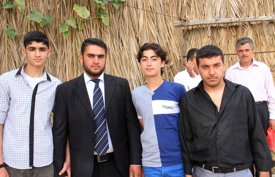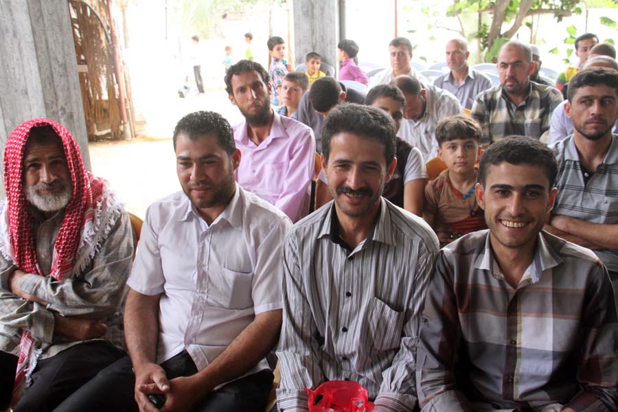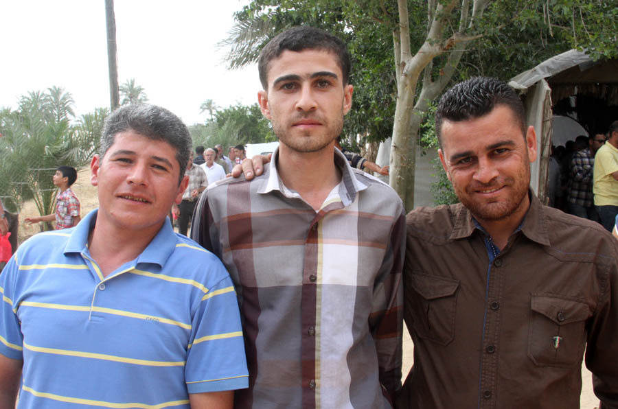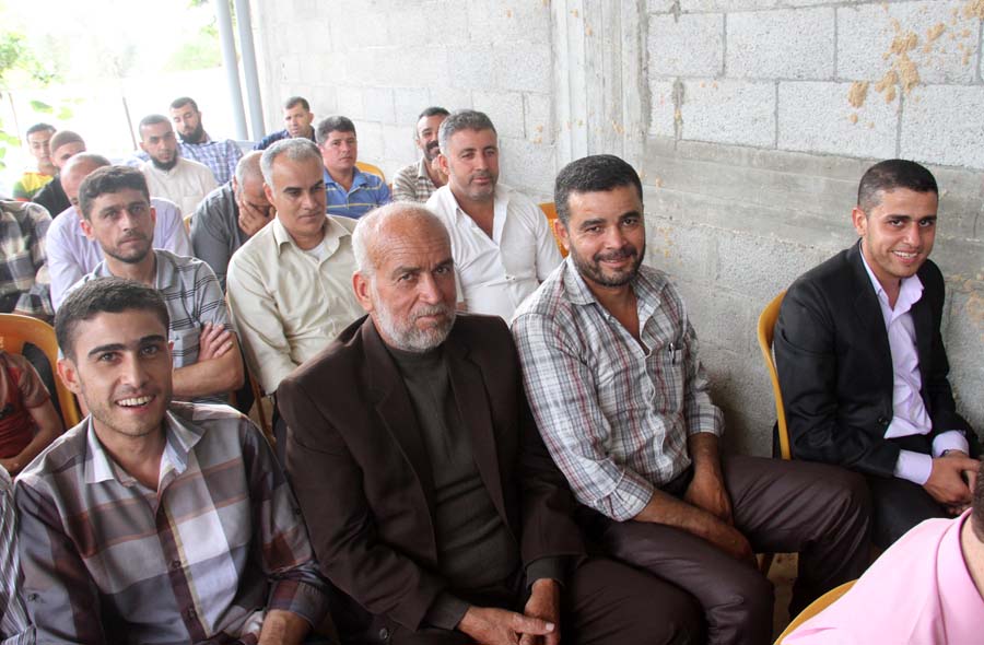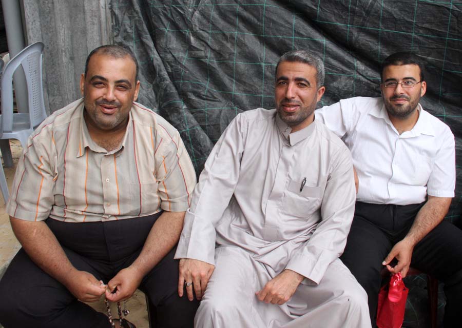 أ. محمد(شقيق العريس)، والد العريس، العريس، رمزي عاشور الأغا(زوج شقيقة العريس)، أكرم(شقيق العريس)، أمجد عليان الأغا، والد العروس