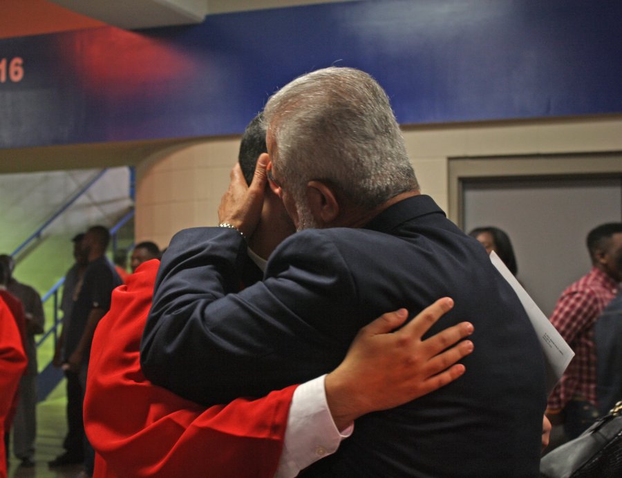 ما أجمل الشعور بالفرح عند النجاح، د. خالد يعانق نجله إبراهيم