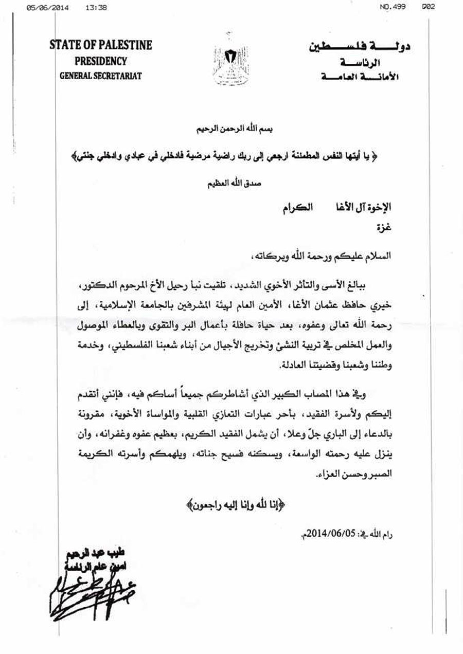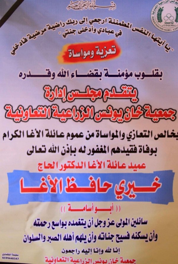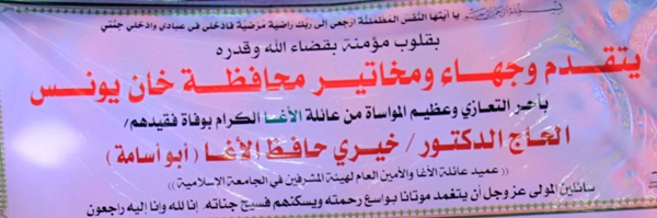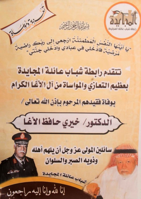 بقلوب مؤمنة بقضاء الله وقدره تنعى عائلة الأغا في الوطن والخارج