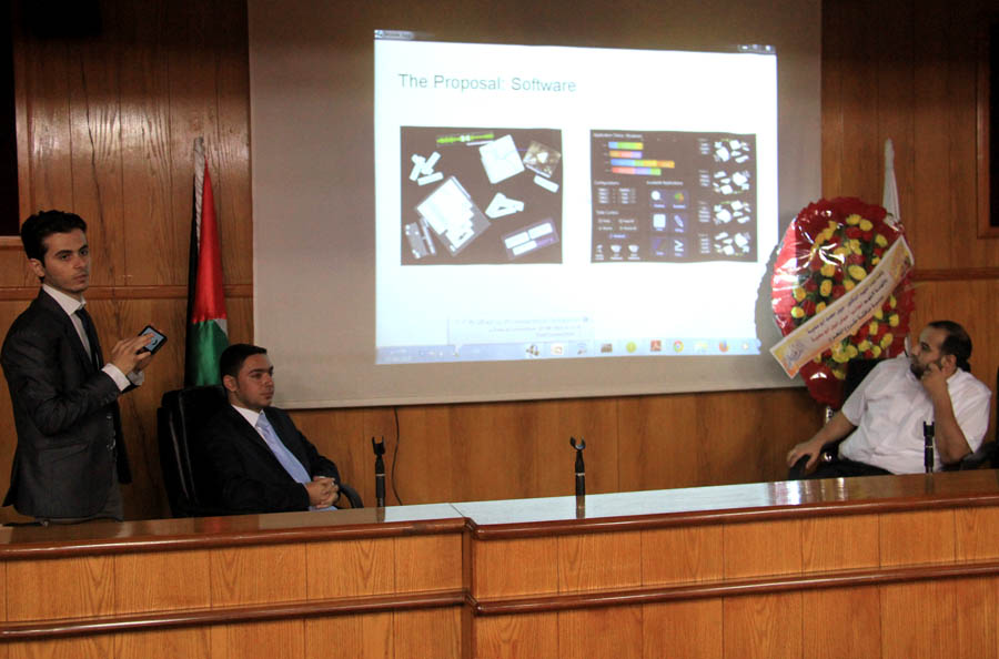 قاعة المؤتمرات- مبنى القدس- الجامعة الإسلامية بغزة- السبت الموافق 7-06-2014، تم بحمد الله مناقشة مشروع تخرج للطالب سليم بيان الأغا هو وزميليه عوض نبيل أبو سلمية ومحمد عمار الشيخ بعنوان: