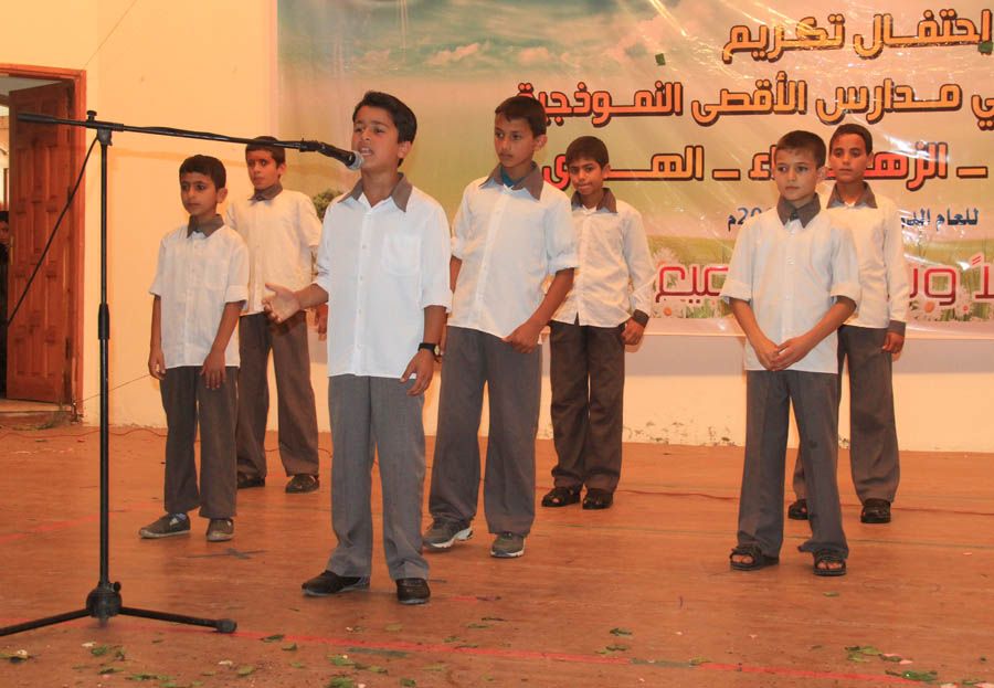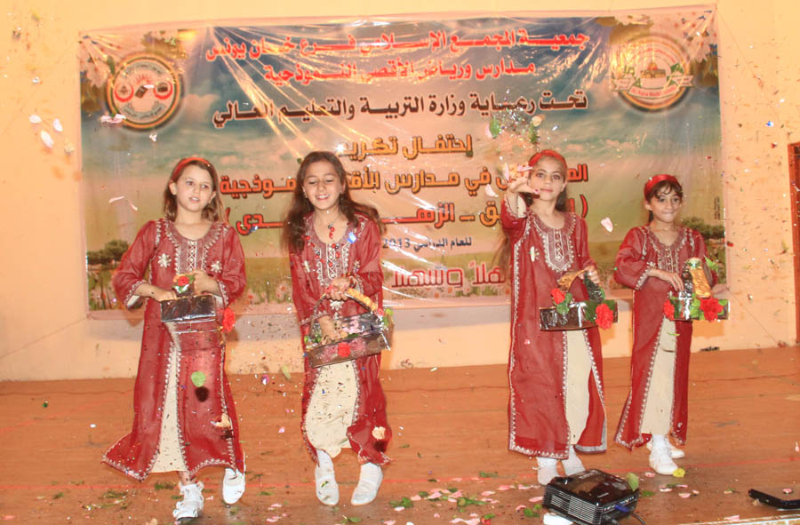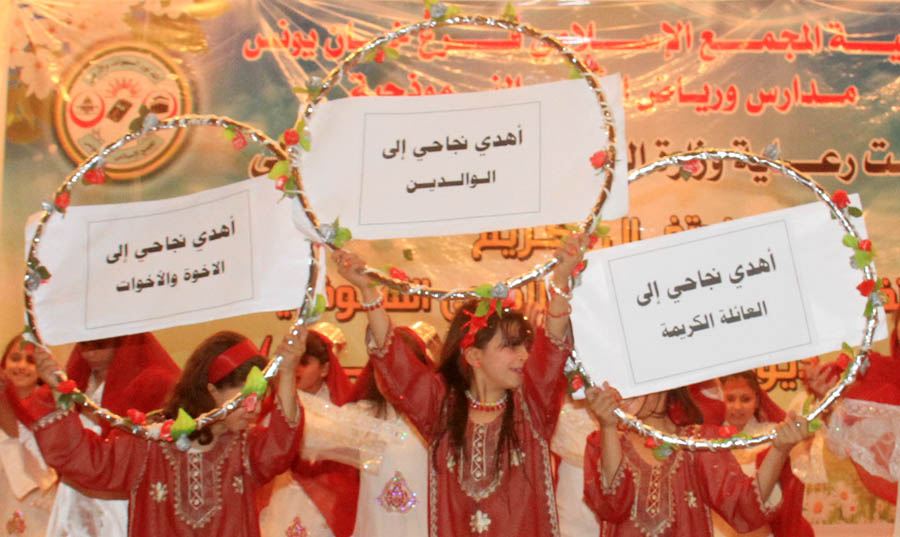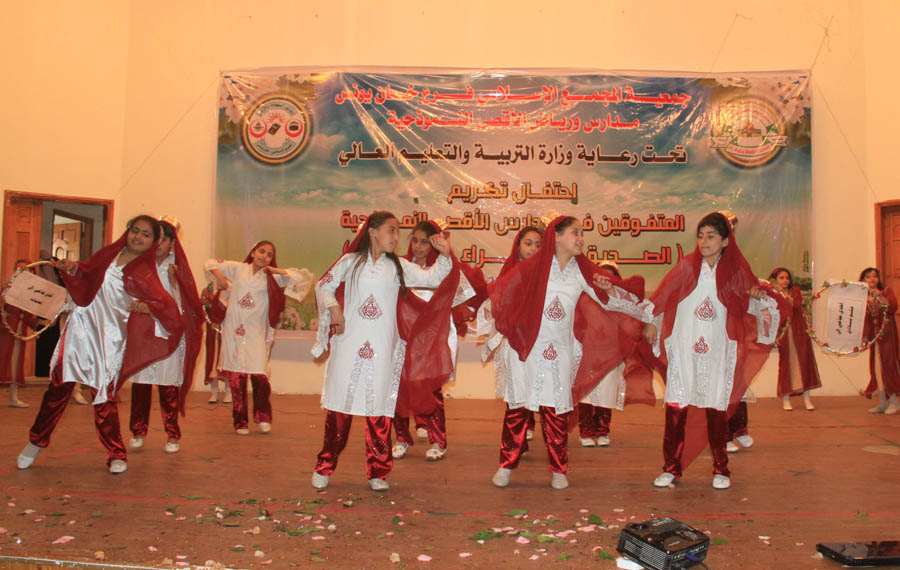 قاعة المركز الثقافي- بجوار كلية العلوم والتكنولوجيا- خان يونس- نظمت جمعية المجمع الإسلامي في خانيونس إحتفال تكريم المتفوقين في مدارس ورياض الأقصى، وحضر الإحتفال لفيف من الشخصيات الإعتبارية والمدرسين وأهالي الطلبة. وفي كلمة لأولياء الأمور د. إبراهيم الأسطل، رحب بالحضور وشكر جهود المدرسة في عطائهم اللامحدود، وطالب من الطلبة الحفاظ على هذا المستوى من الدرجات العليا .