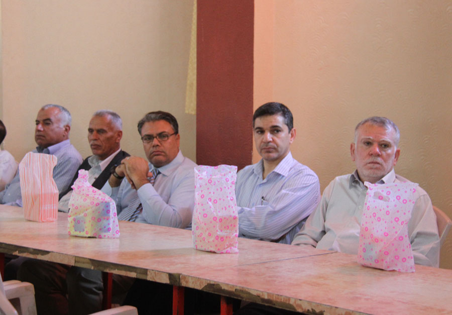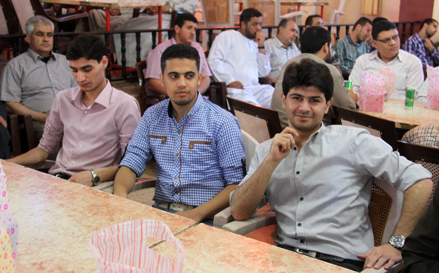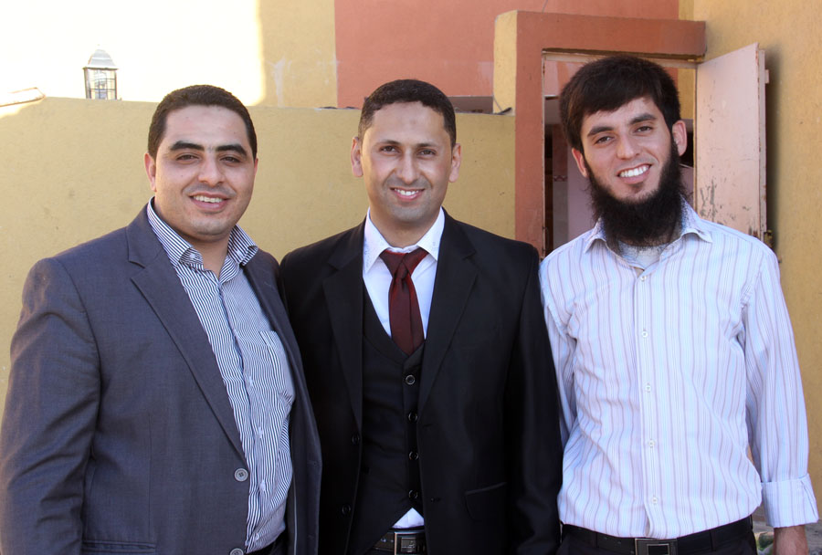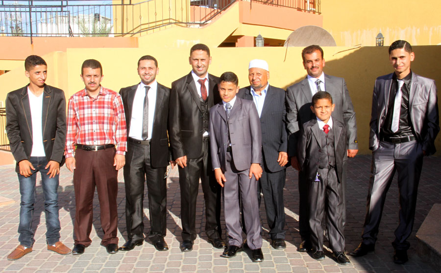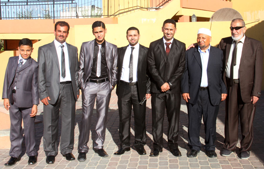 أ. عبدالكريم صقر الاغا(خال العروس)، والد العريس، د. إبراهيم(شقيق العريس)، أ. سمير حرزالله وشقيقه م. محمد، أ. سعيد البردويل