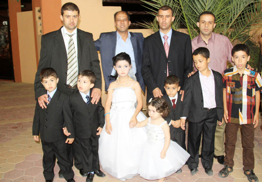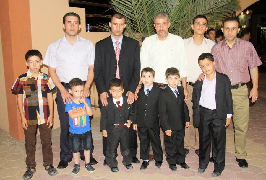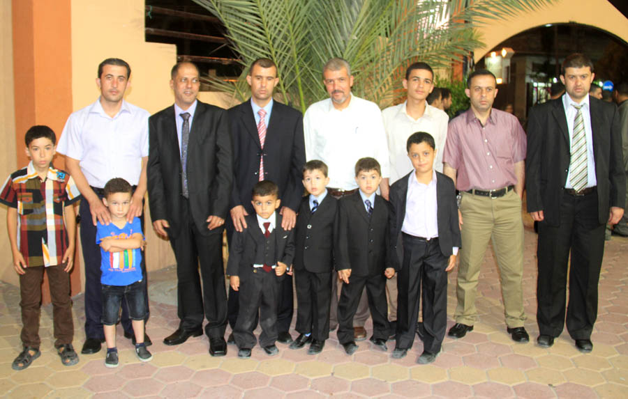 الحاج تيسير مضيوف الأغا، أ. ناهض(شقيق العروس)، العريس، والد العريس، أ. نائل، أ. محمد، أ. محمود(أشقاء العروس)