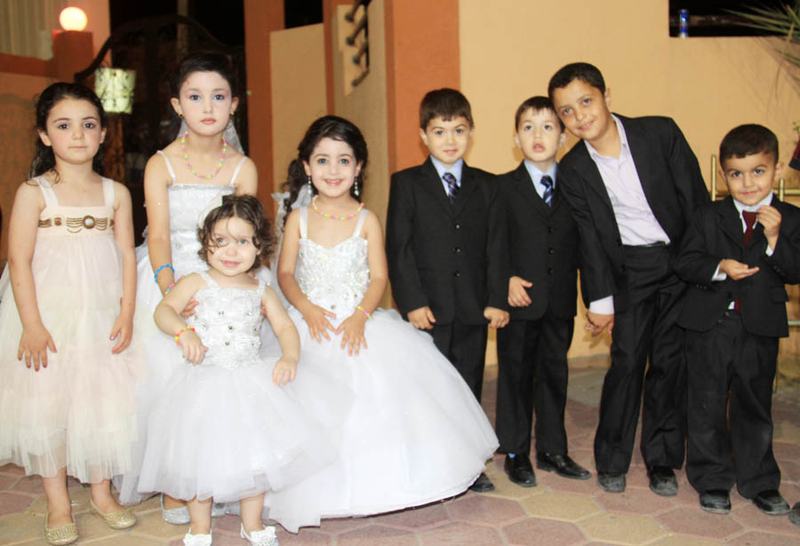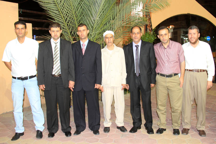 الحاج تيسير مضيوف الأغا، العريس، والد العروس، ..، أ. إبراهيم(شقيق العريس)، أ. نائل، الحاج محمد صالح الأغا ونجله أحمد،