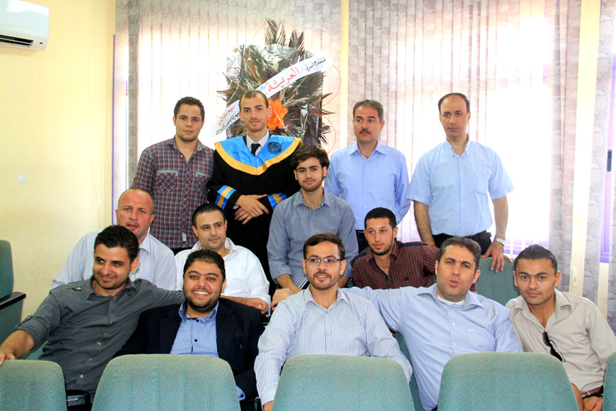 أ. ساري محمد الأغا، فراس عماد الخزندار، والد الباحث، أ. محيي الدين النجار، سليم بيان الأغا، أ. ياسر محمد الأغا، سراج منير الأغا