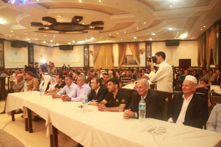 صالة رويال بلاس- خان يونس- السطر الشرقي- الأربعاء الموافق 18-6-2014م- الاحتفال الفني الكبير ابتهاجاً بفوز المنشد أحمد عبدالجواد حامد العقاد وتتويجه لقب النجم في مسابقة الانشاد الوطني التي اقامتها قناة الكتاب الفضائية لعام 2014م .